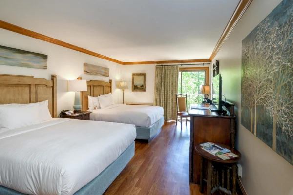 This room for two guests features two queen-sized beds, ensuite bathroom, a private patio or balcony, a flat-screen TV, mini-fridge, coffee maker and all the typical hotel amenities. The location offers easy access to everything, ensuring an effortless experience at the Golden Road Festival.